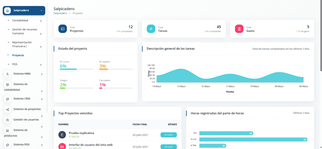 Tiene el panel de control más completo con todos los detalles esenciales bajo un solo encabezado. Desde cada detalle minucioso como el total de clientes, usuarios, facturas, proyectos, estimaciones de clientes potenciales, ofertas y artículos, puede obtener datos cuantitativos en el diseño más simple.
