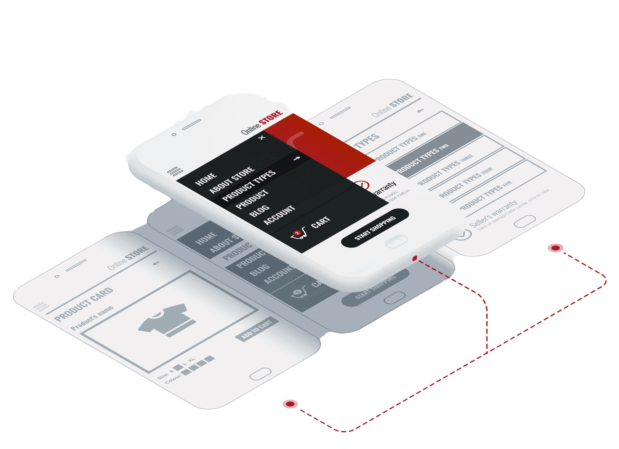 Nuestro equipo trazara la experiencia del usuario y crearán las interfaces de usuario y los estados de la aplicación en varias fidelidades.